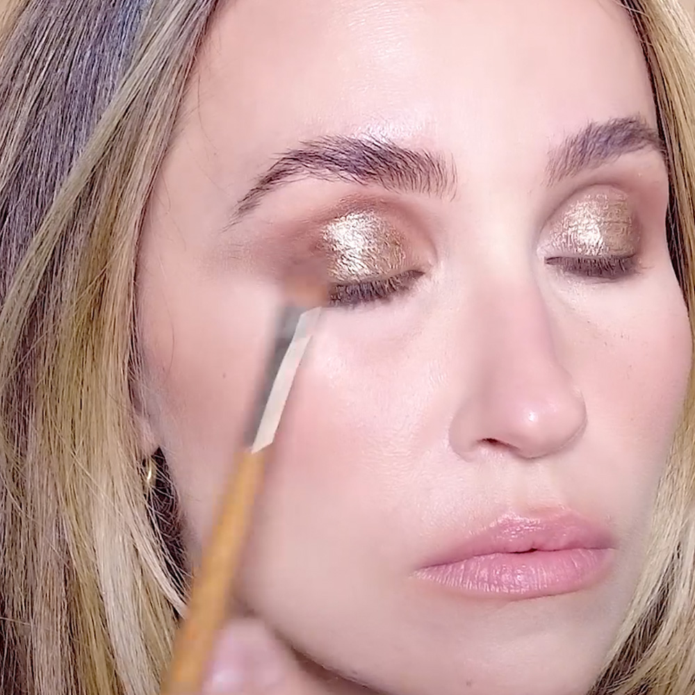 For more glamourous eyes i am applying on my eye lids the Pearl Pigment in shade PP02 BROWN SUGAR. Pick up a small amount of our Pearl Pigment with an eyeshadow brush and place it directly onto your eyelid. Blend the edges carefully with a soft blender brush. For a more intense look, apply the pigments direct with your finger.